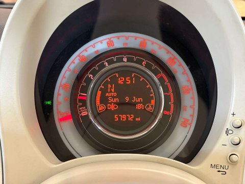 SPEC – This Fiat 500 comes with CD Player, Radio, speakers, 12v power socket, tyre pressure indicator, eco mode, electric front windows, front fog lights, climate control air conditioning, remote central locking, ABS, airbags, ISOFIX and more.